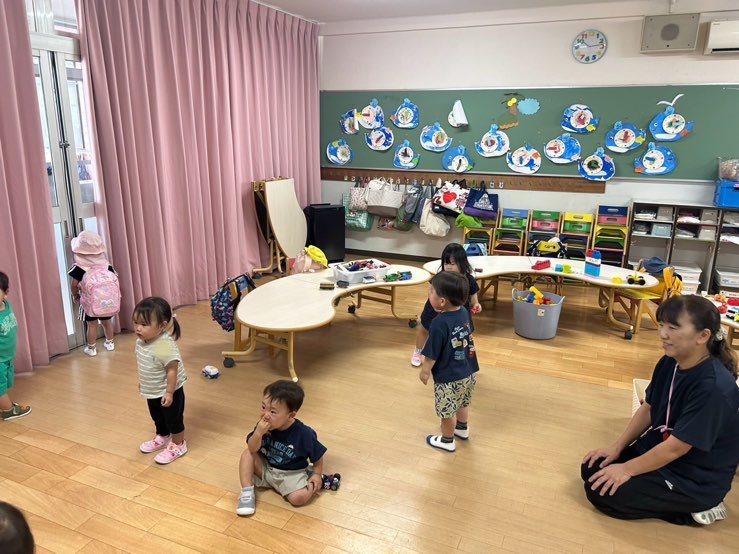 楽しみにしていたリュックサックを背負って、二学期のぴよちゃん1歳児クラスがスタートしました。