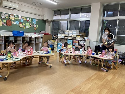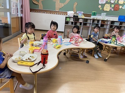 水筒をカゴに入れたり、タオルをかけたり、給食の用意など毎回少しずつ繰り返しの中で幼稚園生活の土台を築いてくれているのが嬉しいです★