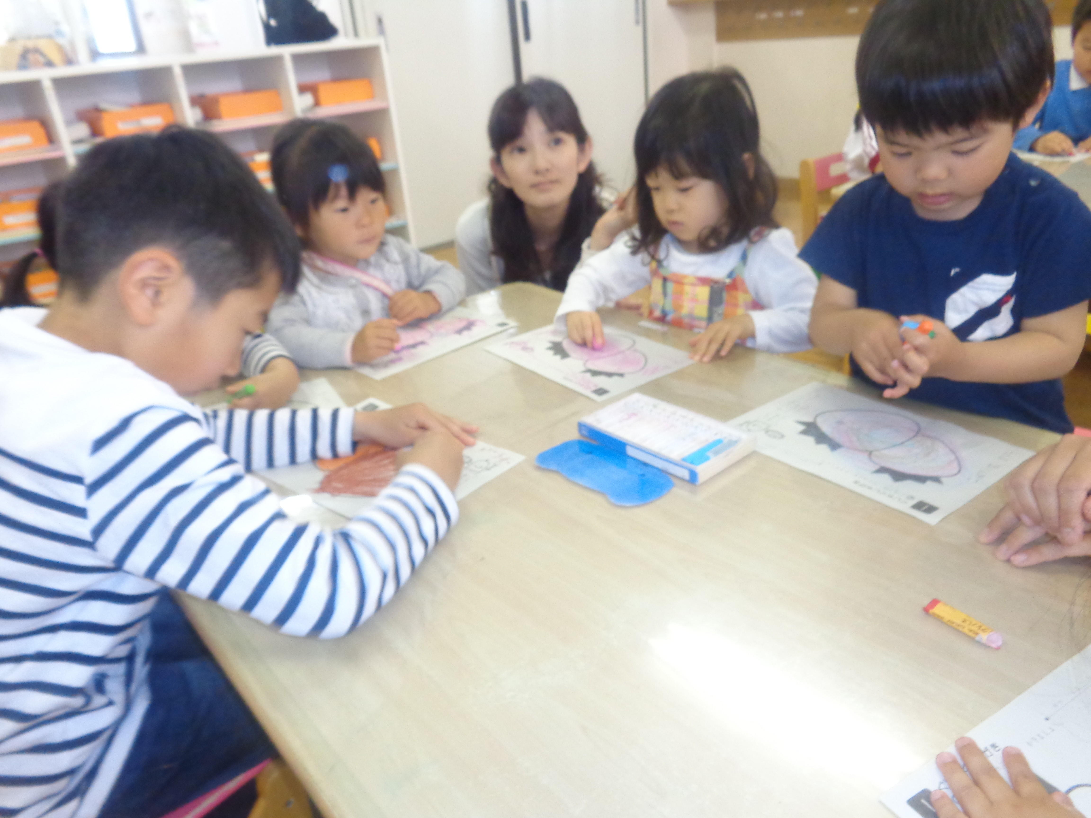 そして、スマートキッズと言う教材のカードや、クレパスを使ってする‘グチャグチャ書き‘にもチャレンジしました(^v^)