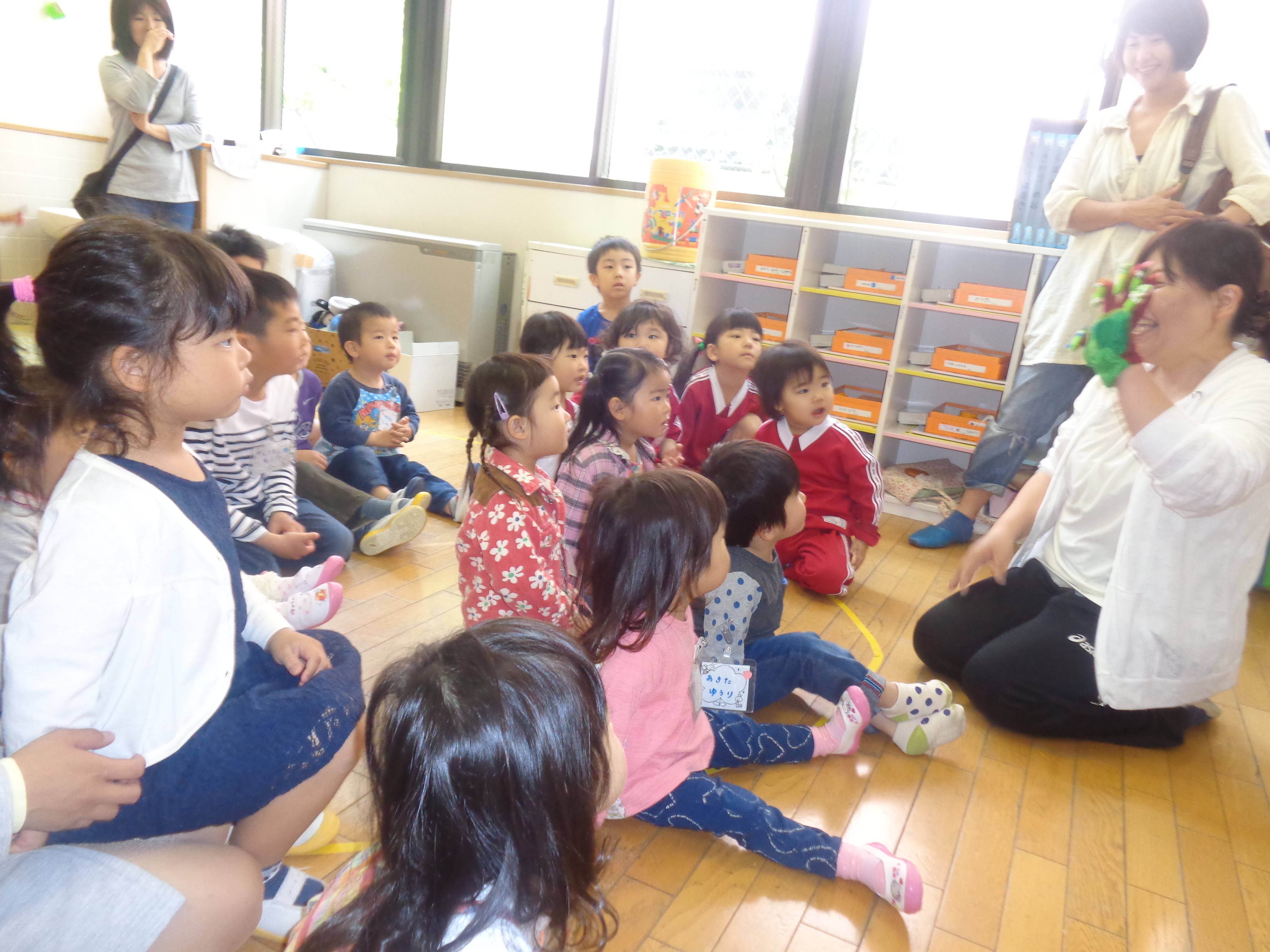 ホールへ移動して、リトミック遊びやはらぺこあおむしのペープサートも見て楽しみましたね☆