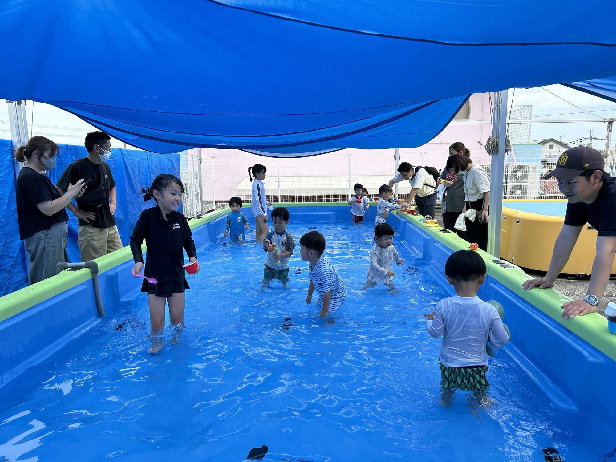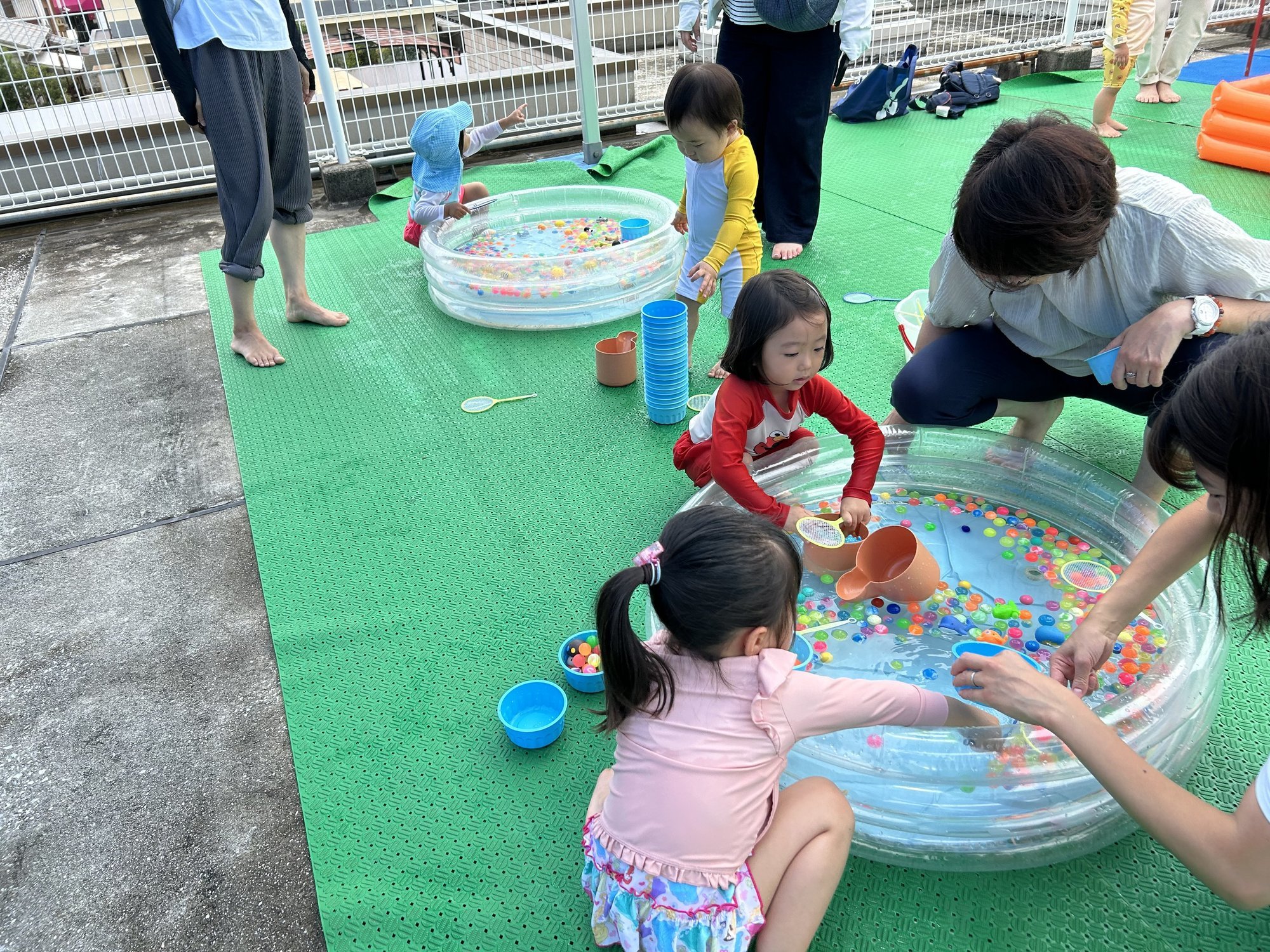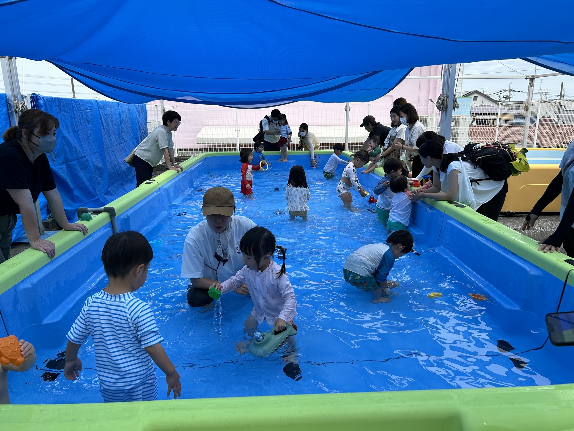 お水を怖がらずダイナミックに遊ぶお友達もいれば、貝殻やおもちゃで水遊びするお友達もいました( ˶ˊᵕˋ)