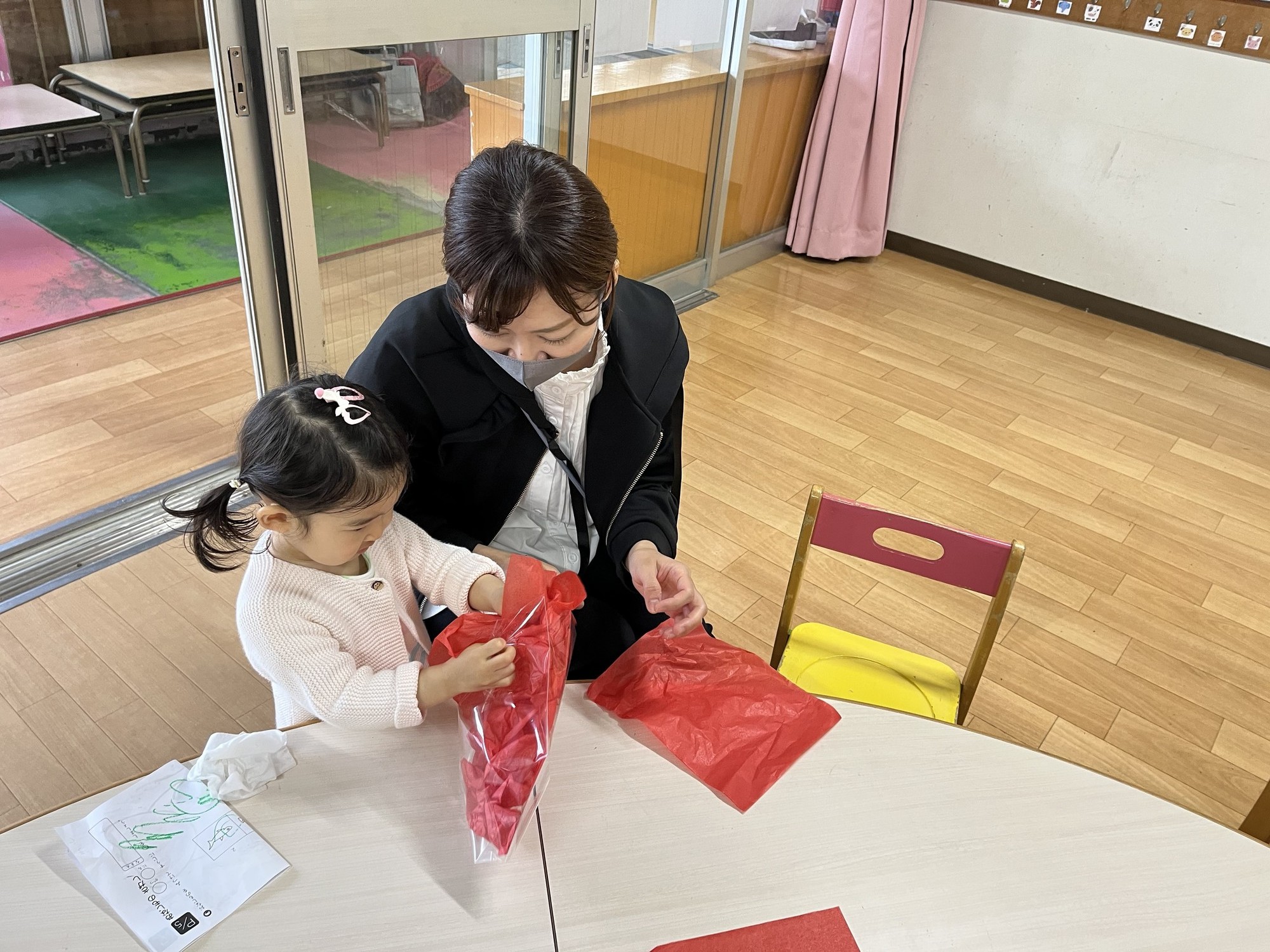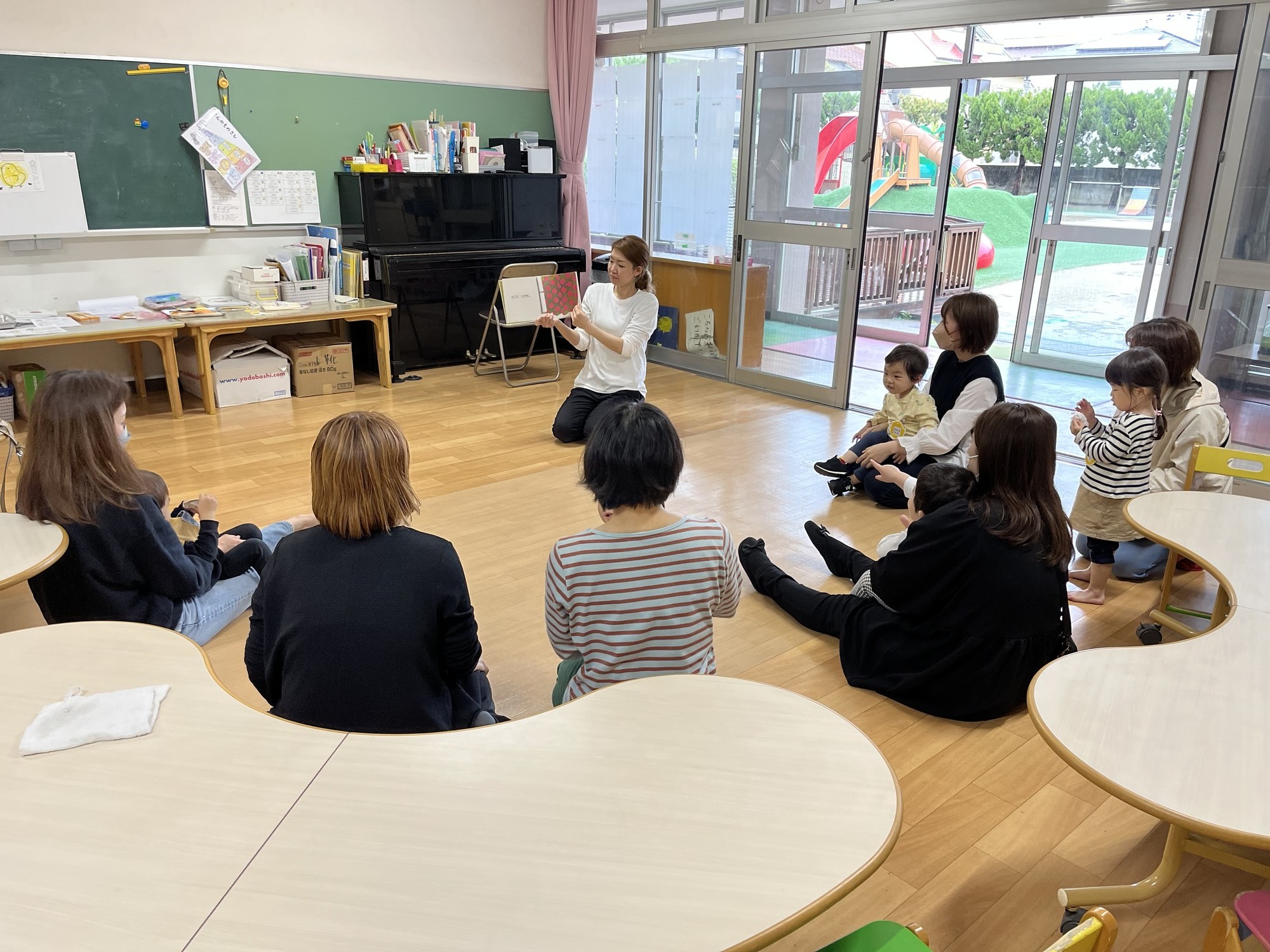 あいにくの雨の日になりましたが、小さなお友達がお母さんと一緒に来てくださって、楽しくお遊びが出来ました。