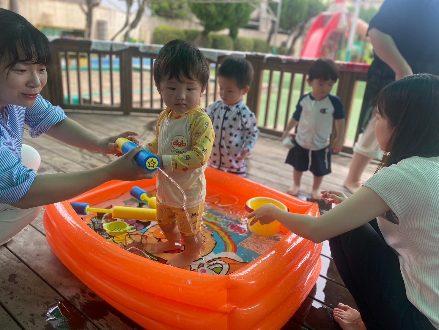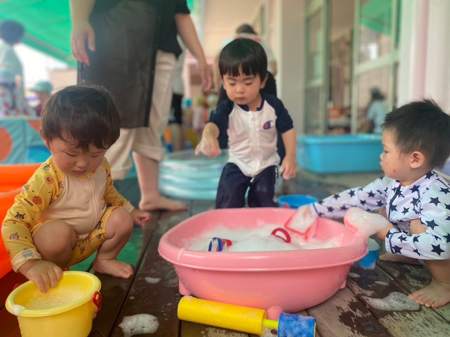ぴよちゃん1歳クラスは、2回目のプール水遊びを楽しみました!