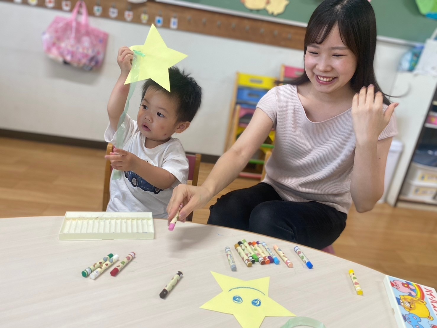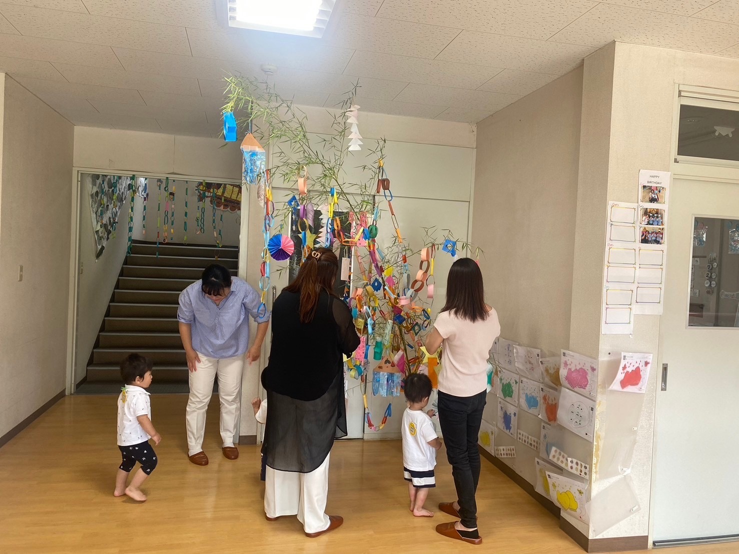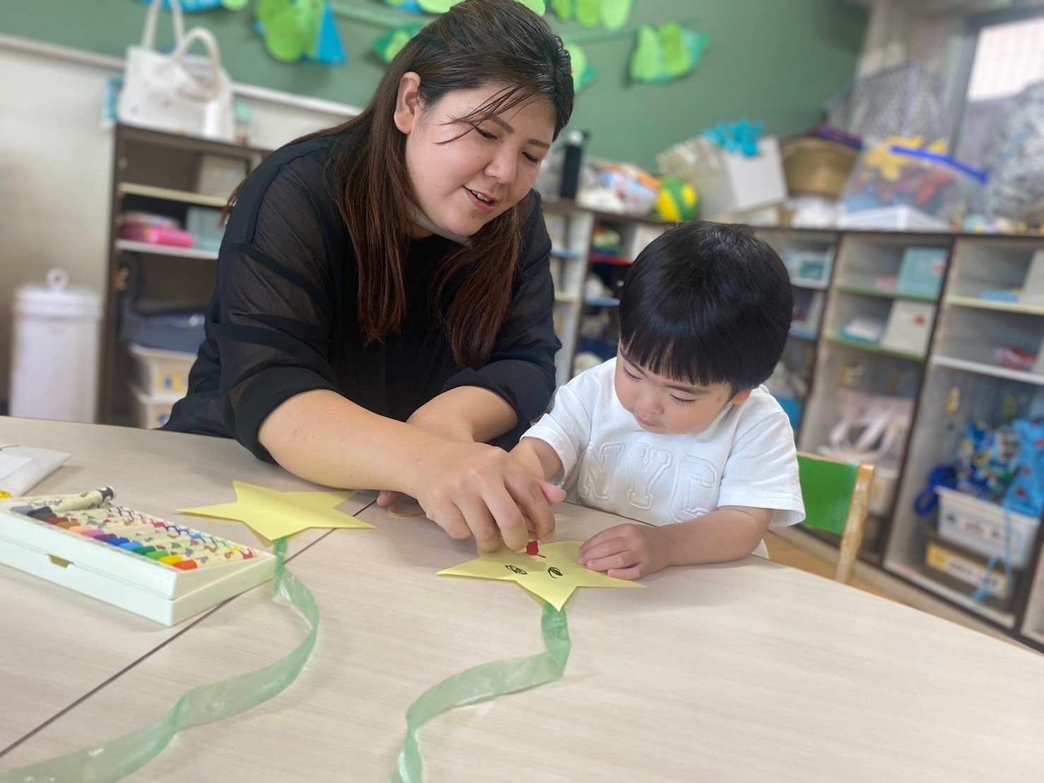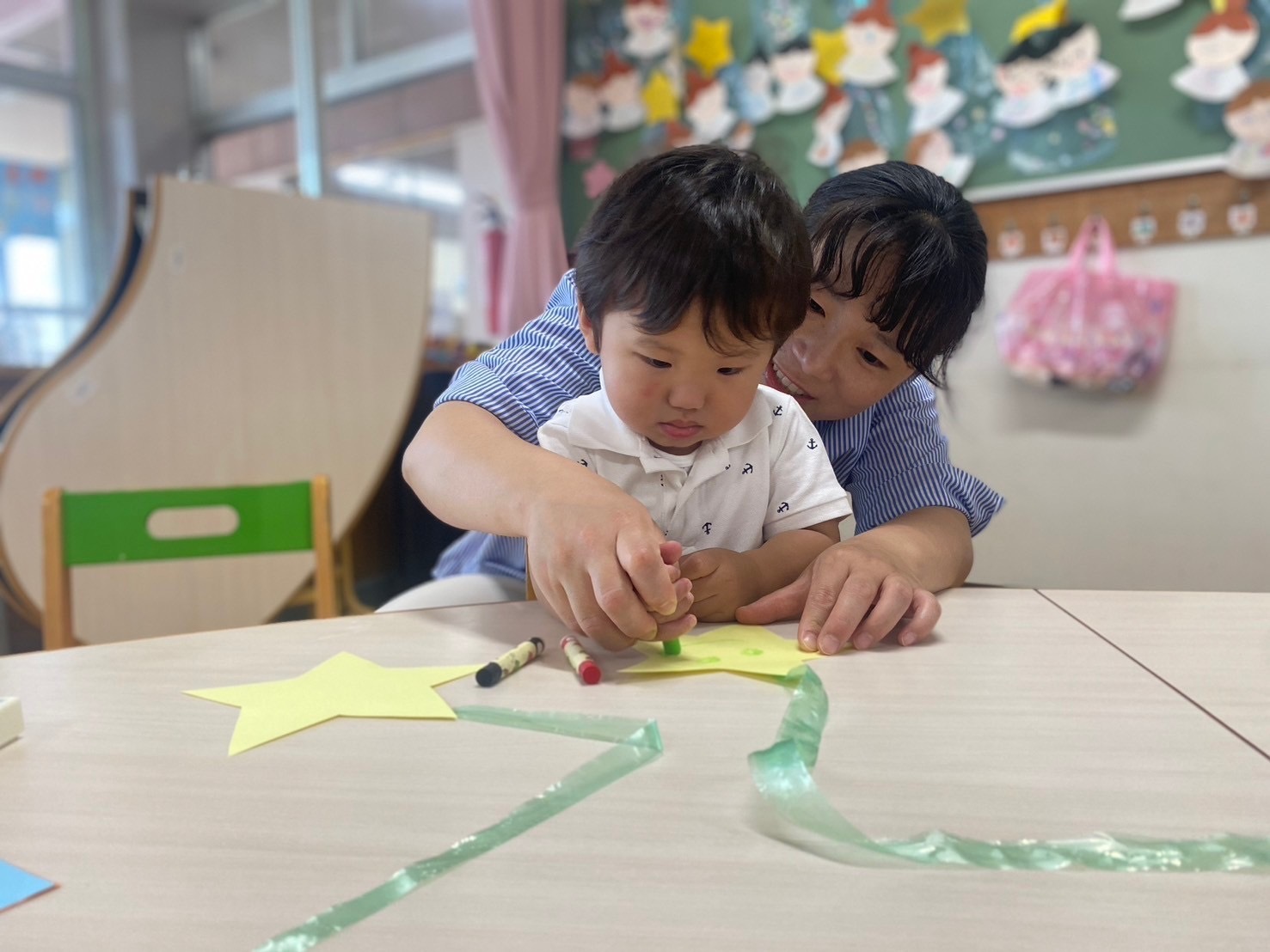 お星様の顔と短冊にお母さんにお願い事を書いてもらいました。