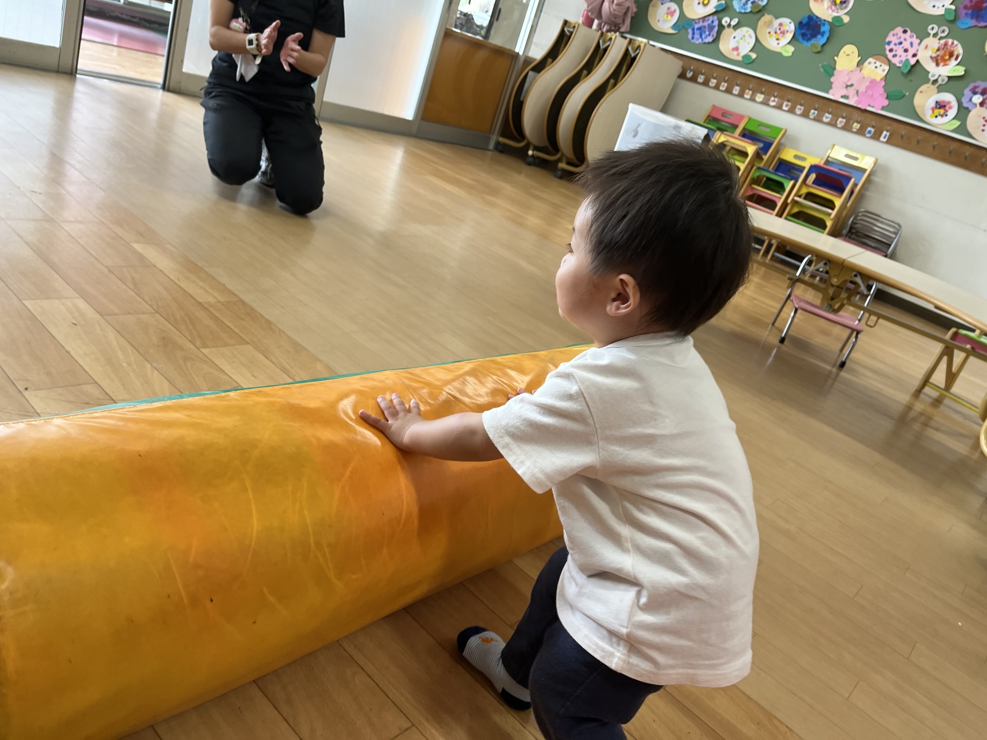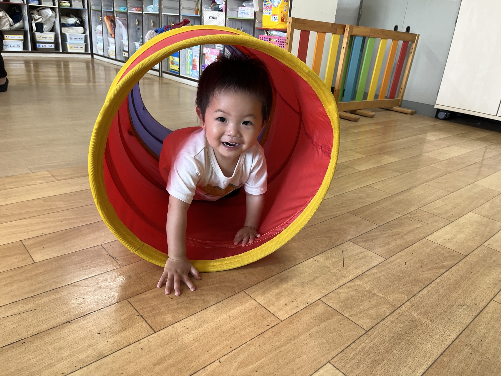 前にトンネルをくぐった時は、お母さんに呼んでもらったりして、なんとかくぐったけど、今回は、自分から進んでニコニコしてくぐれました。
