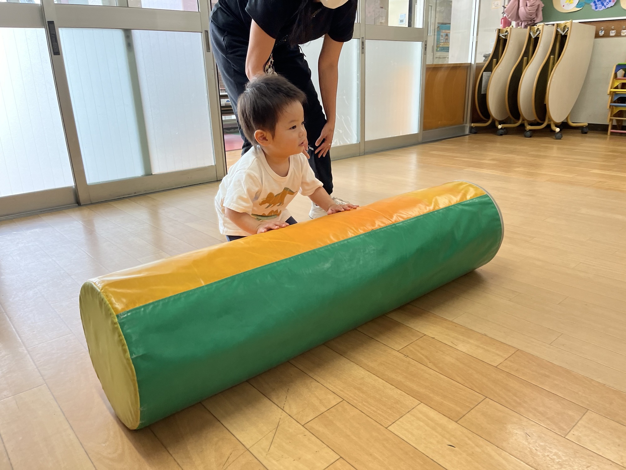 丸棒も押したり、反対に転がしたりして、楽しんでいましたね。