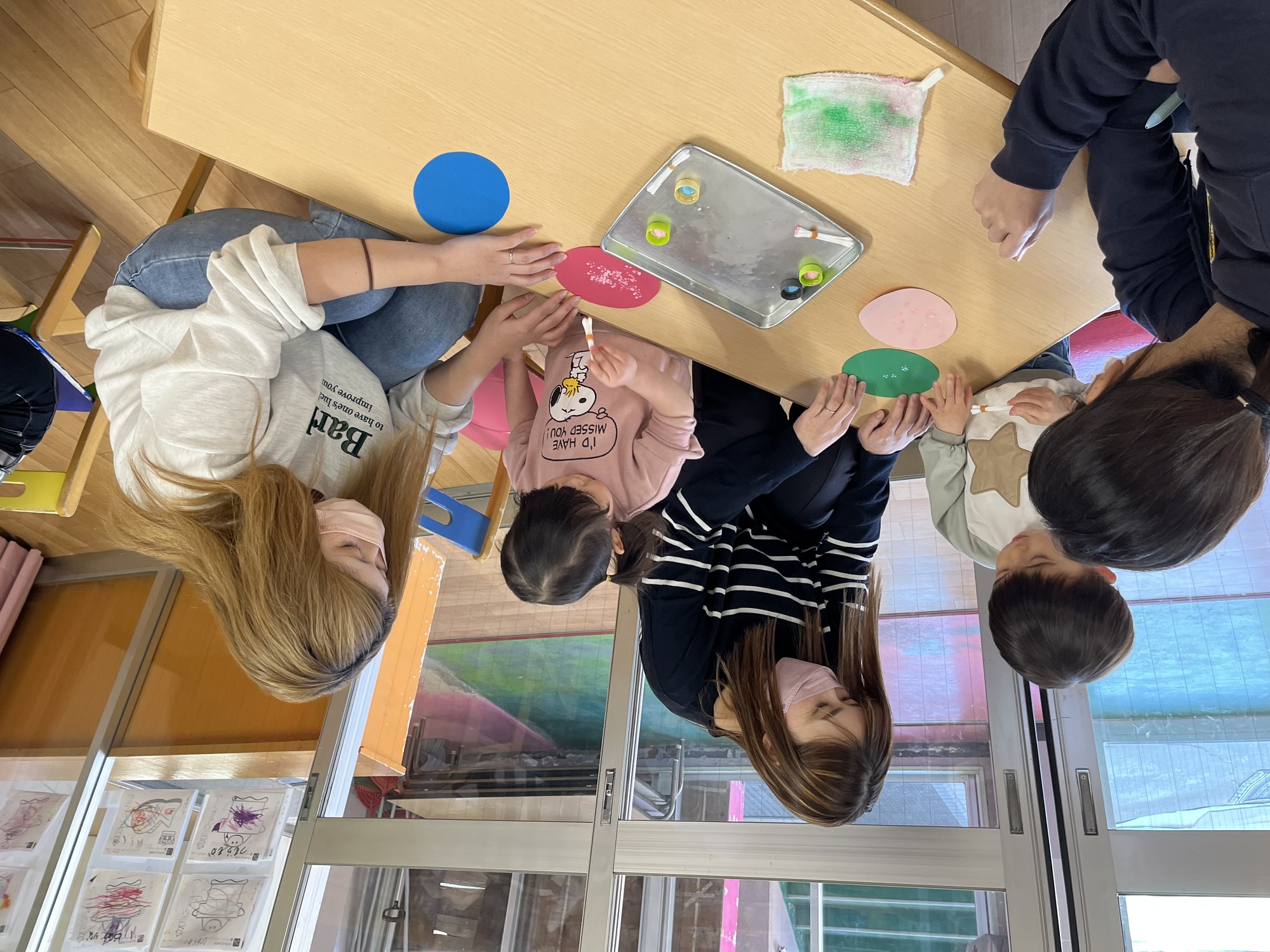 人差し指でノリをすくって、指を横に動かし上手につけられるようになってきましたね。