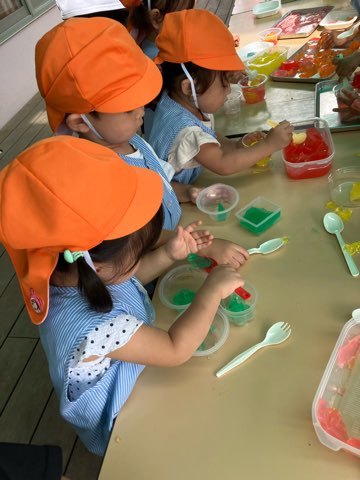 色々な色があるなかで、自分で選んで感触を楽しみました。