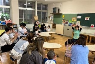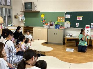 フラッシュカードでは、大きな声が聞こえてくるようになり、お返事もちょっぴり恥ずかしがりながらも手を挙げて「は~い♡」