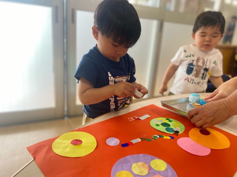 前回まる〇の形をみんなで覚えてのりでペタペタ貼りました!
