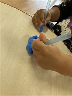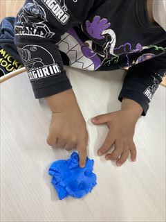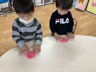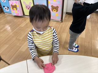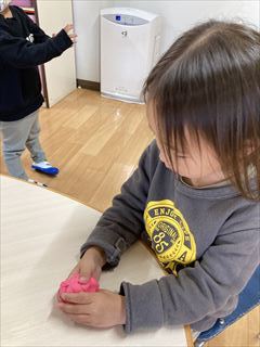2歳児さんは、粘土をこねこね。