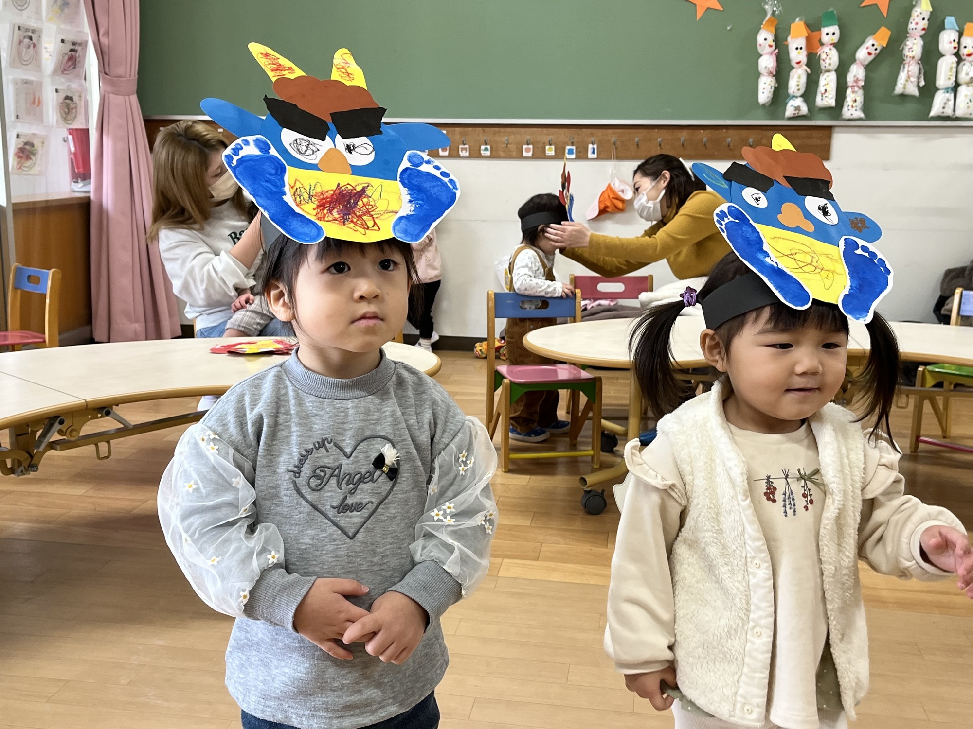 3日の節分の日、お面のかぶって豆まきして下さいね。
