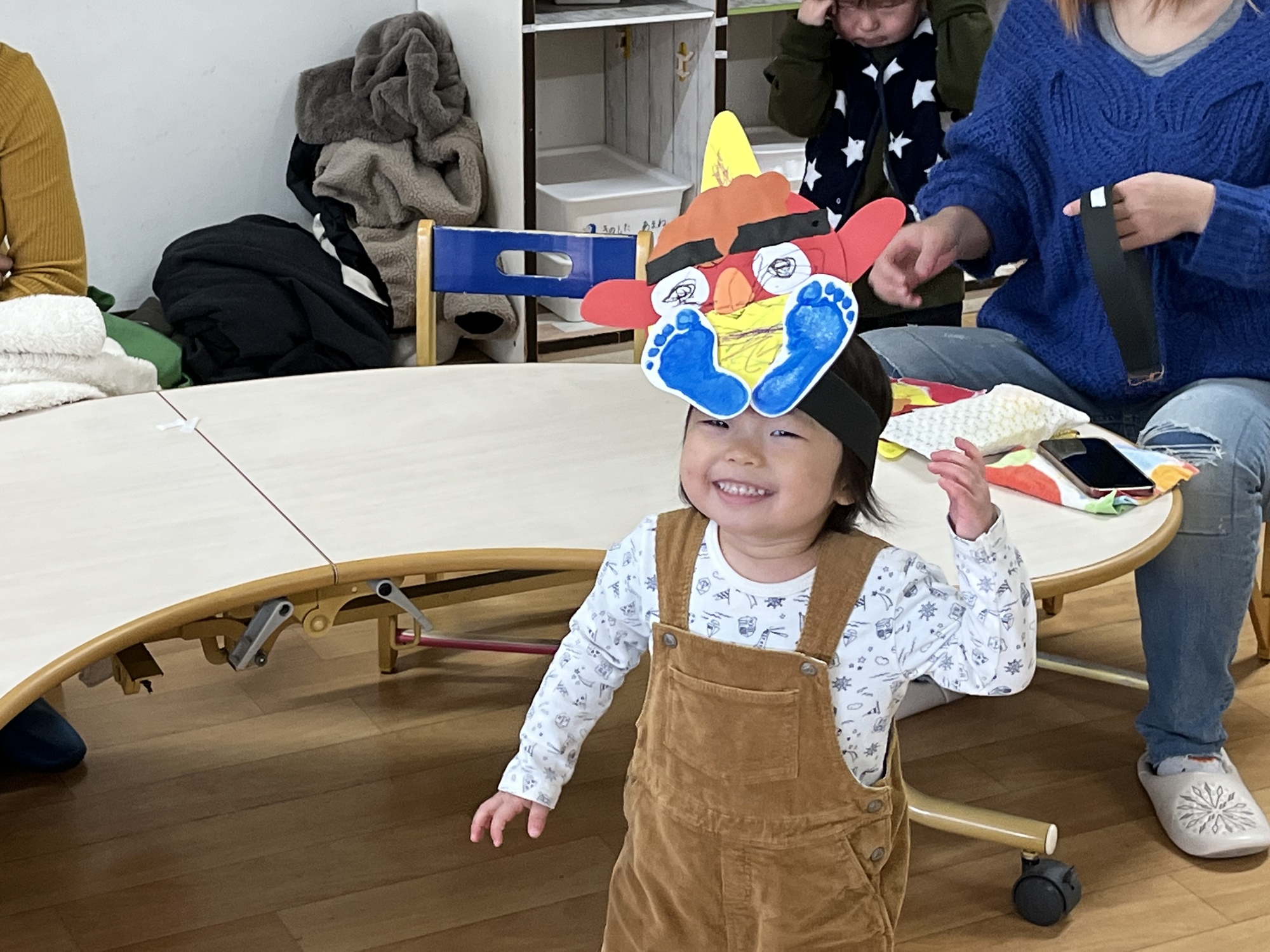 今日のぴよちゃん1歳は、節分の鬼のお面作りの続きをしました。