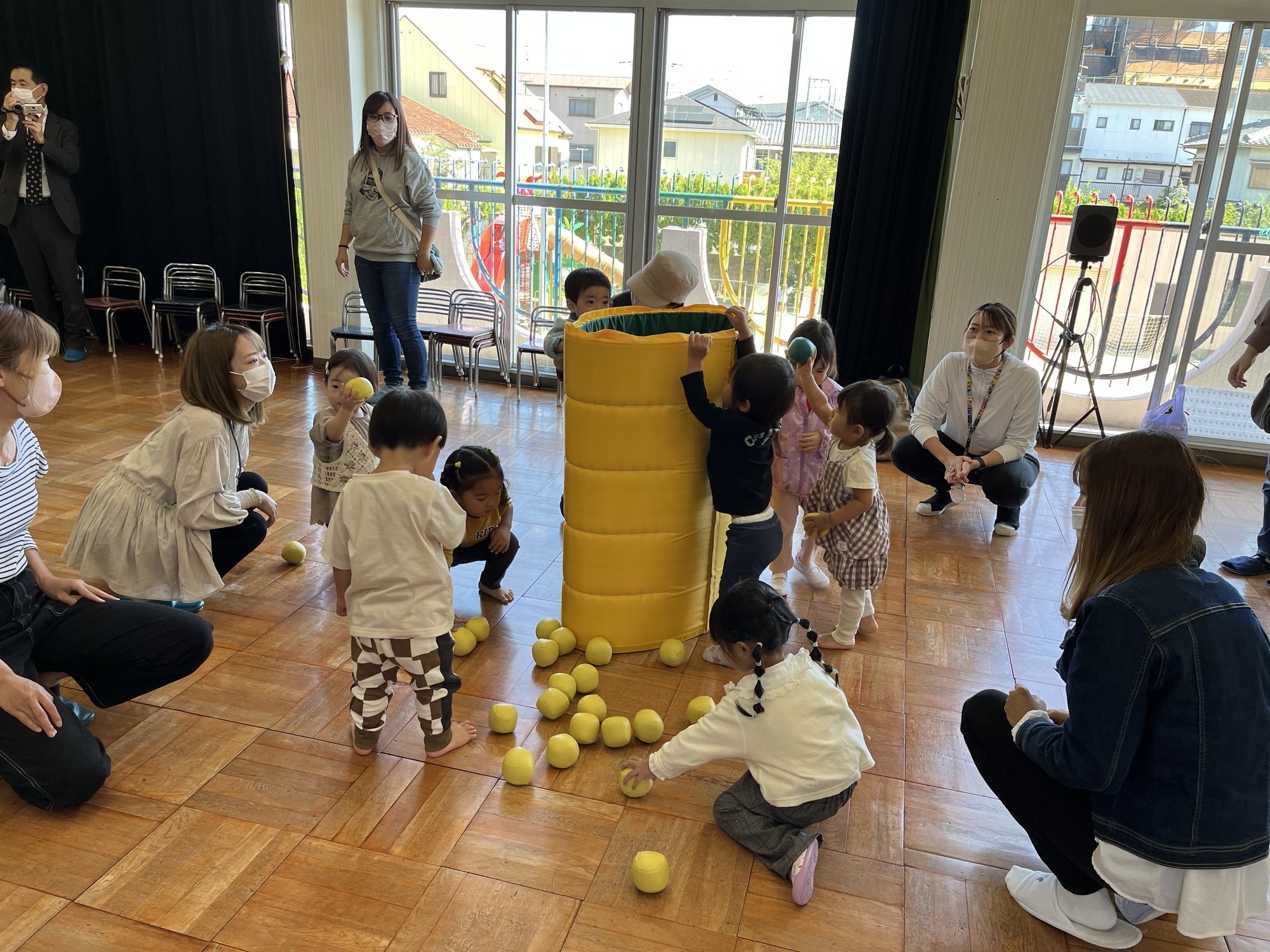 大きなマットの筒の中に、ボールをぽ~ん!!