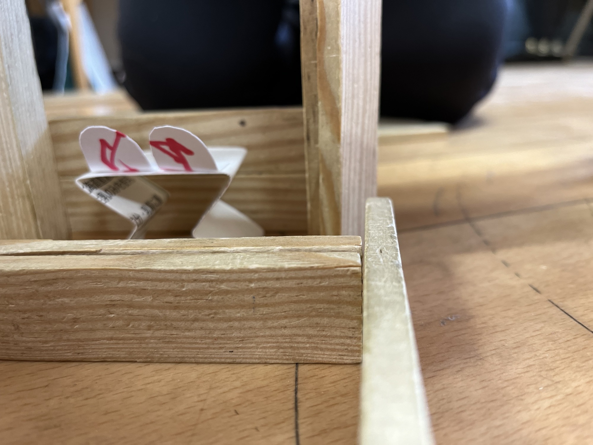 作る途中で、丸になったり、四角になる紙をのぞいてみたり、転がしたり…。