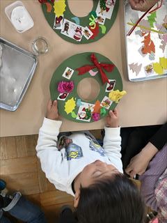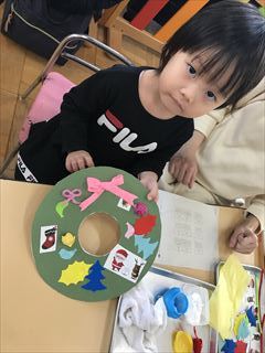緑のわっかに、飾りをつけていきました(*^_^*)