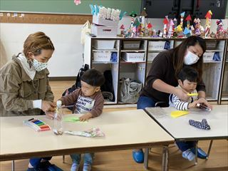 その後は、サンタのマラカスを作りました。