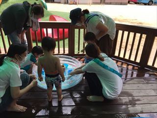 今日のぴよちゃん教室は、水遊びを楽しみました☆