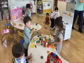 お母さんと離れるのは泣いていましたが、おままごとやブロックで遊んでいると・・・