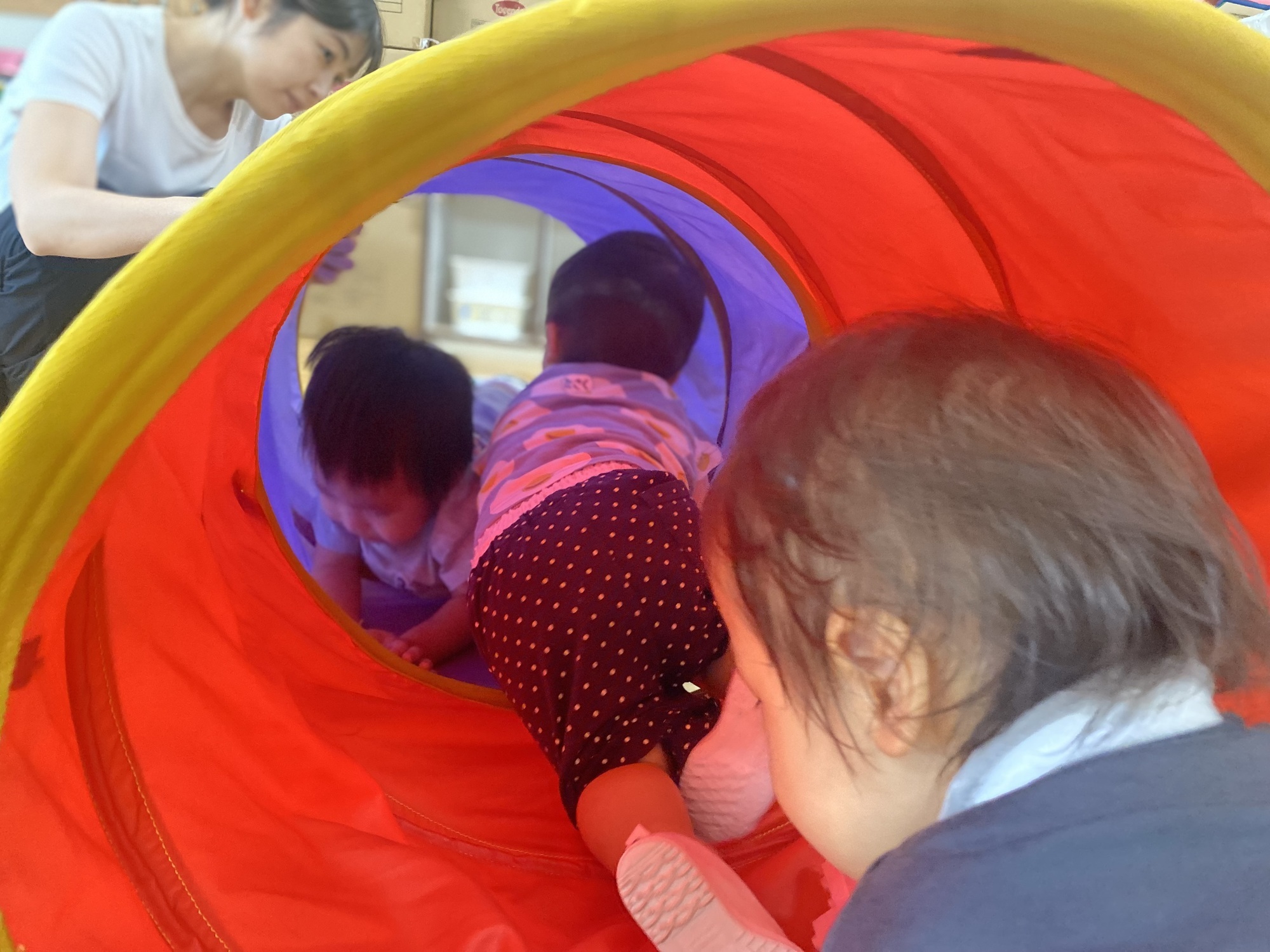 テラスに行ってトンネルくぐり遊びとボール遊び。