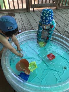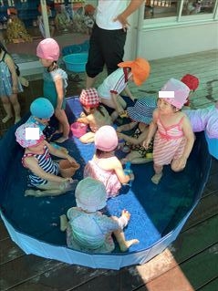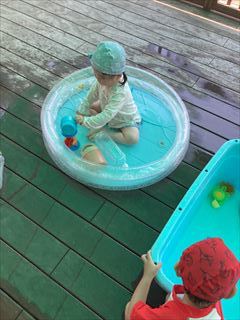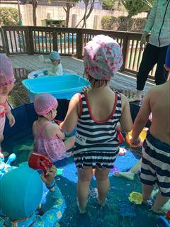 みんな、思い思いに好きなおもちゃや遊びを見つけて水の感触を楽しんでいましたよ(^O^)