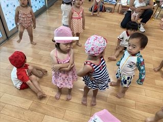 水泳帽を被って、登園してきてくれるお友達もいましたよ☆
