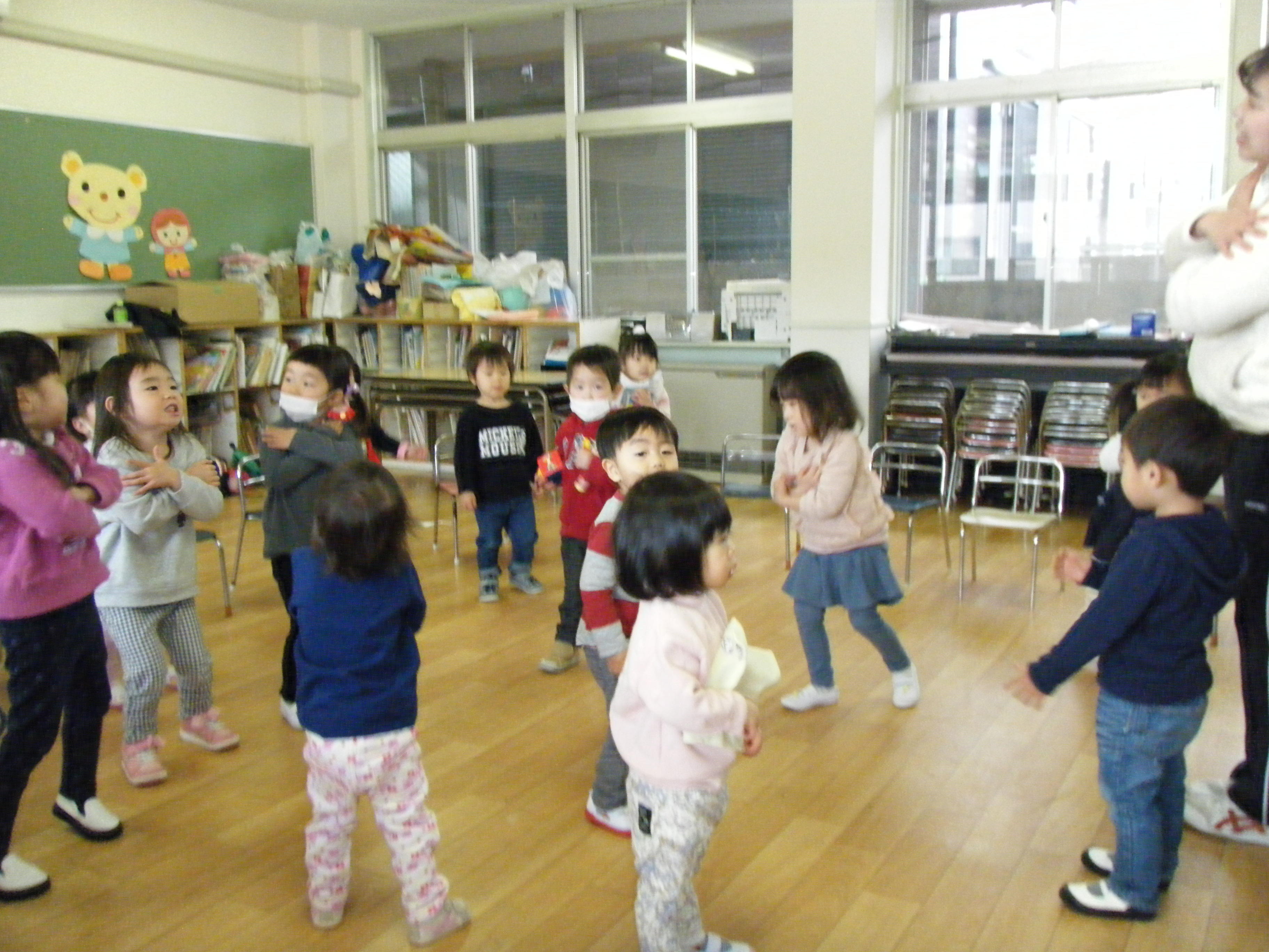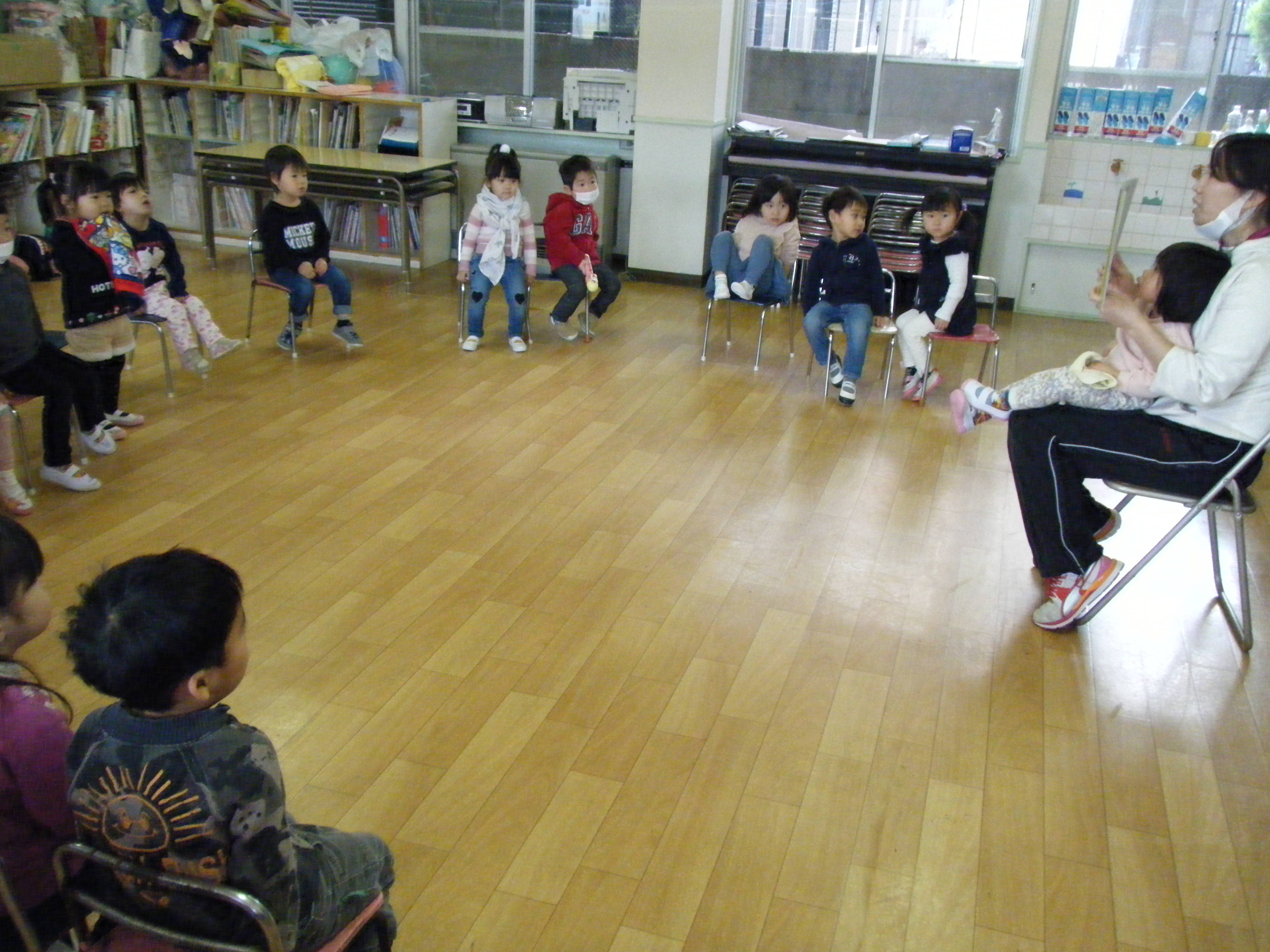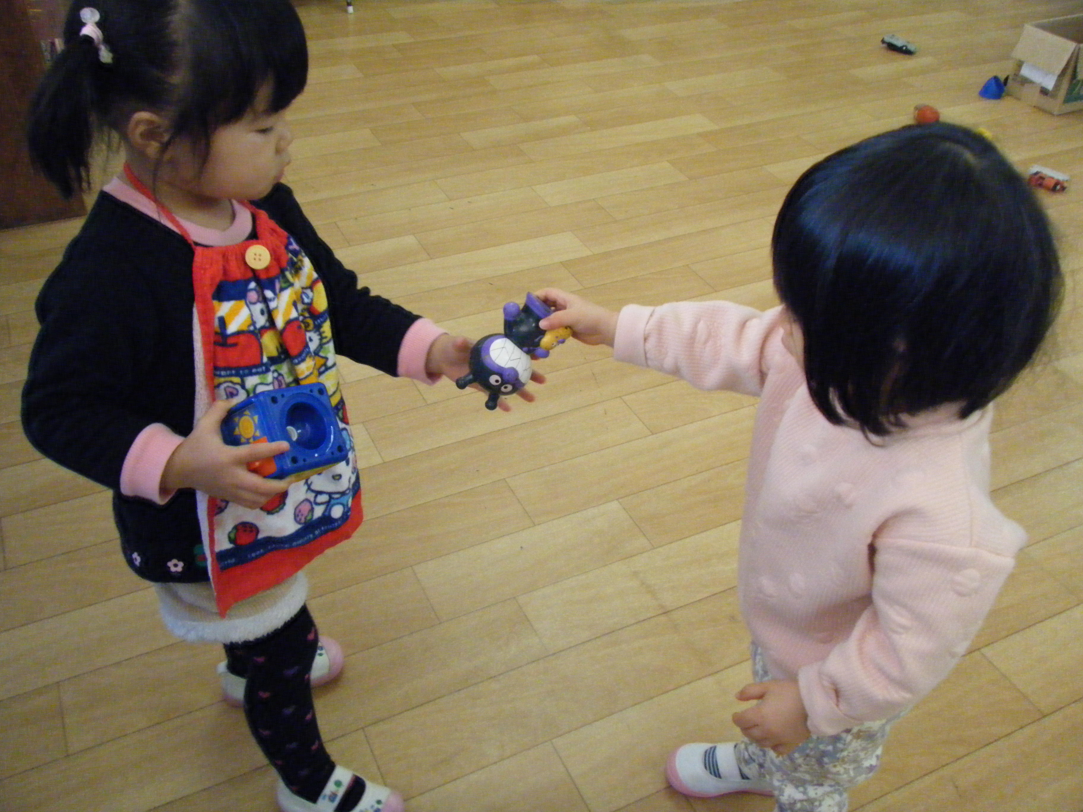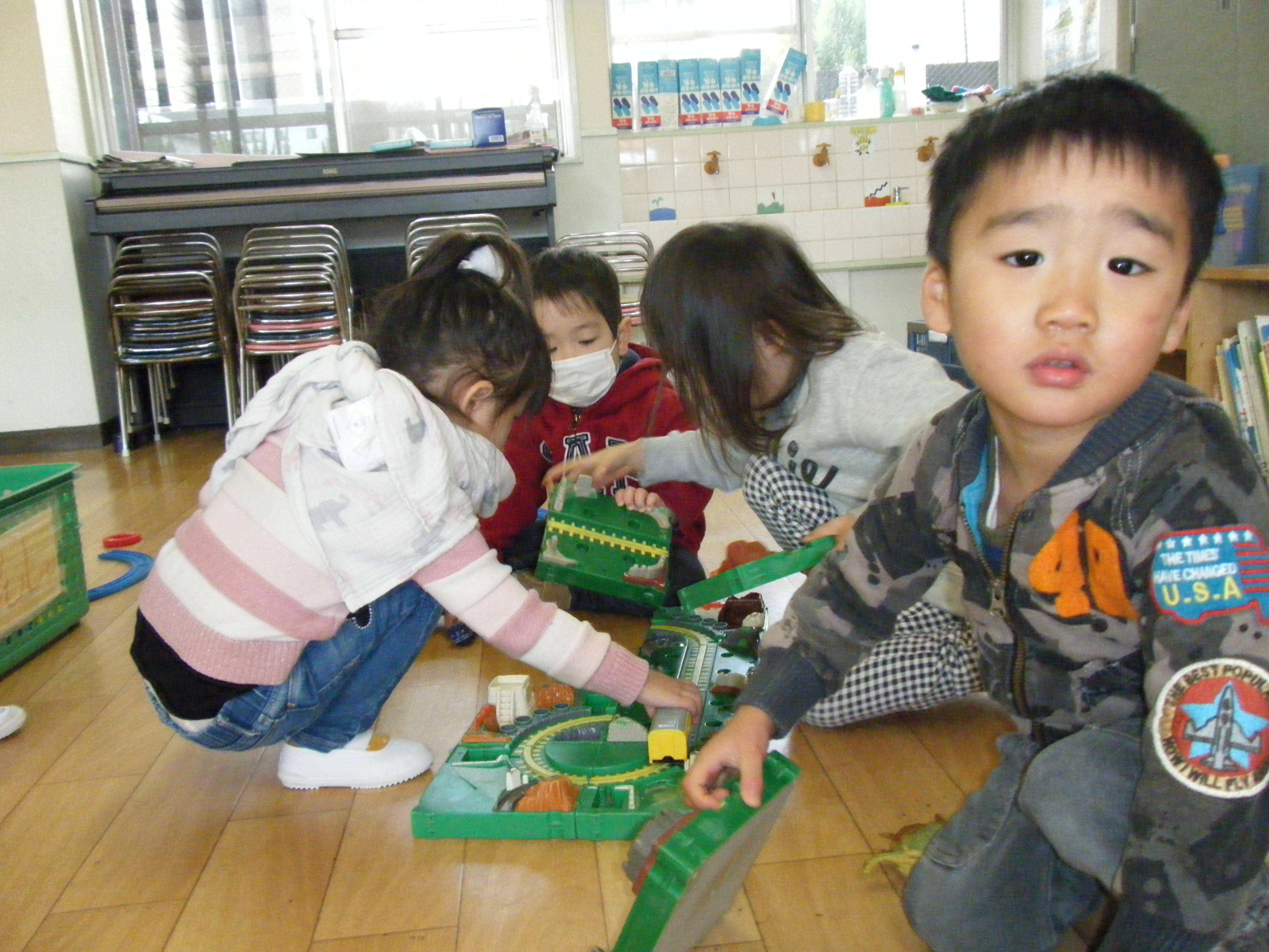 初めての母子分離(^−^) (ぴよちゃん 木下) 2018/01/24 今日は、初めてお母さんと離れて教室をおこないました(^—^) 私もびっくりしたのですが、誰も泣かずにスムーズに登園してきてくれました☆ 自由遊びを中心に、順次グループでトイレに行き、お片付けをしてからは、お歌や手遊び・絵本をみたり☆ 自由遊びでは、電車をつなげたり、おままごとをしたり、アンパンマンを抱っこしてみたり☆ お友達との関わりも、遊んでいるうちに少しづつでてきました☆ 一緒に関わりあいながら遊ぶ子もいれば、一人遊びの中でお友達のしている事に興味を持ってみたり☆ お返事もみんなとっても上手にしてくれましたよ☆ また、来週楽しみにしています(^—^)