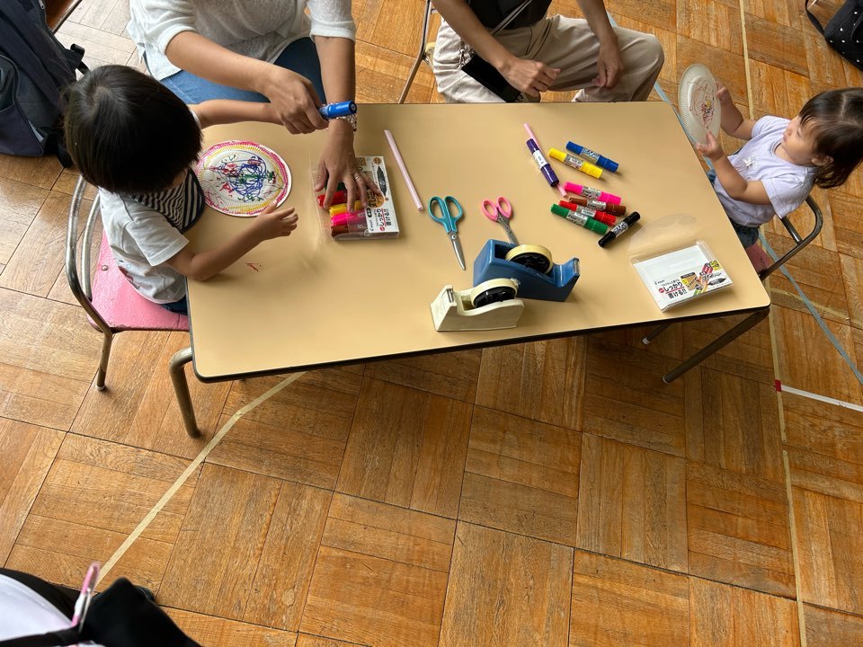 今回、園庭開放は紙皿を使って制作遊びをしましたぁ~!!(^O^)/