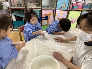 小さなお友だちは、感触を十分に楽しみ、大きなお友だちは見立てを楽しみました☆彡