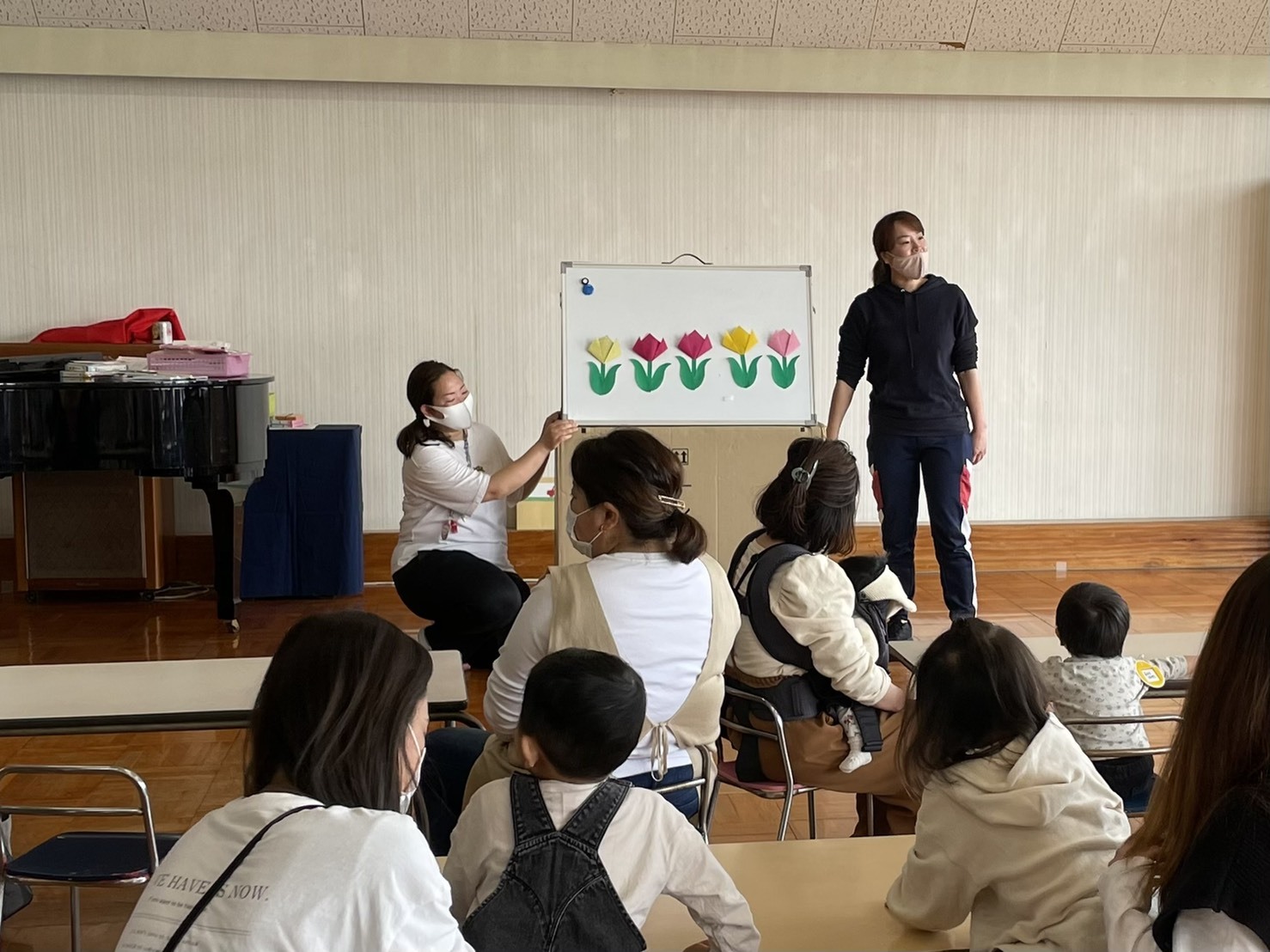 朝のご挨拶をして、チューリップやおつかいありさんのお歌を歌いました。