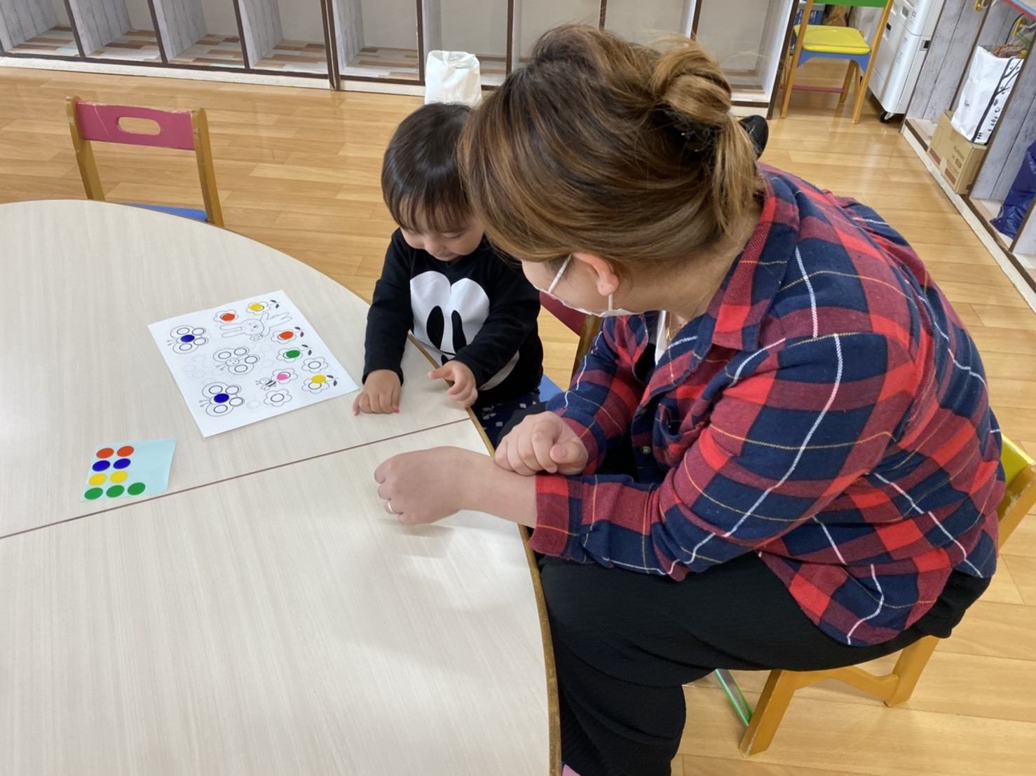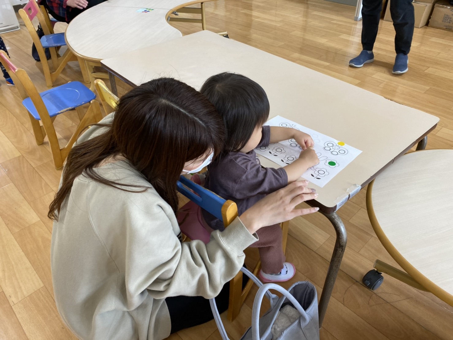 可愛いお友達が、お母さんと一緒に来てくれて、幼稚園でお遊びを楽しみましたよ。