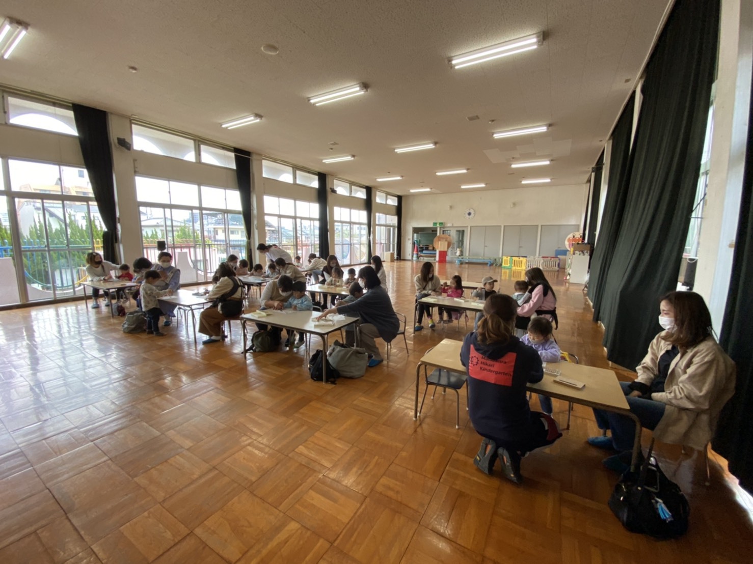 2才さんは、お友達がとっても多かったので、密を避け、ホールの大きなお部屋でお遊びをしました。
