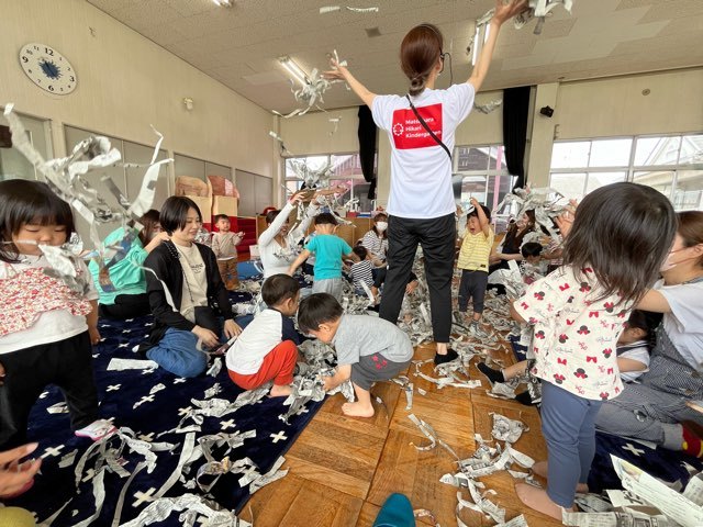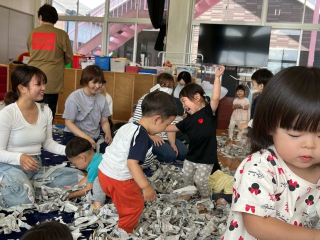 新聞紙をビリビリ破って紙吹雪見たいに ふわぁ~!! と舞い散るのが一番楽しそうでしたね♪♪