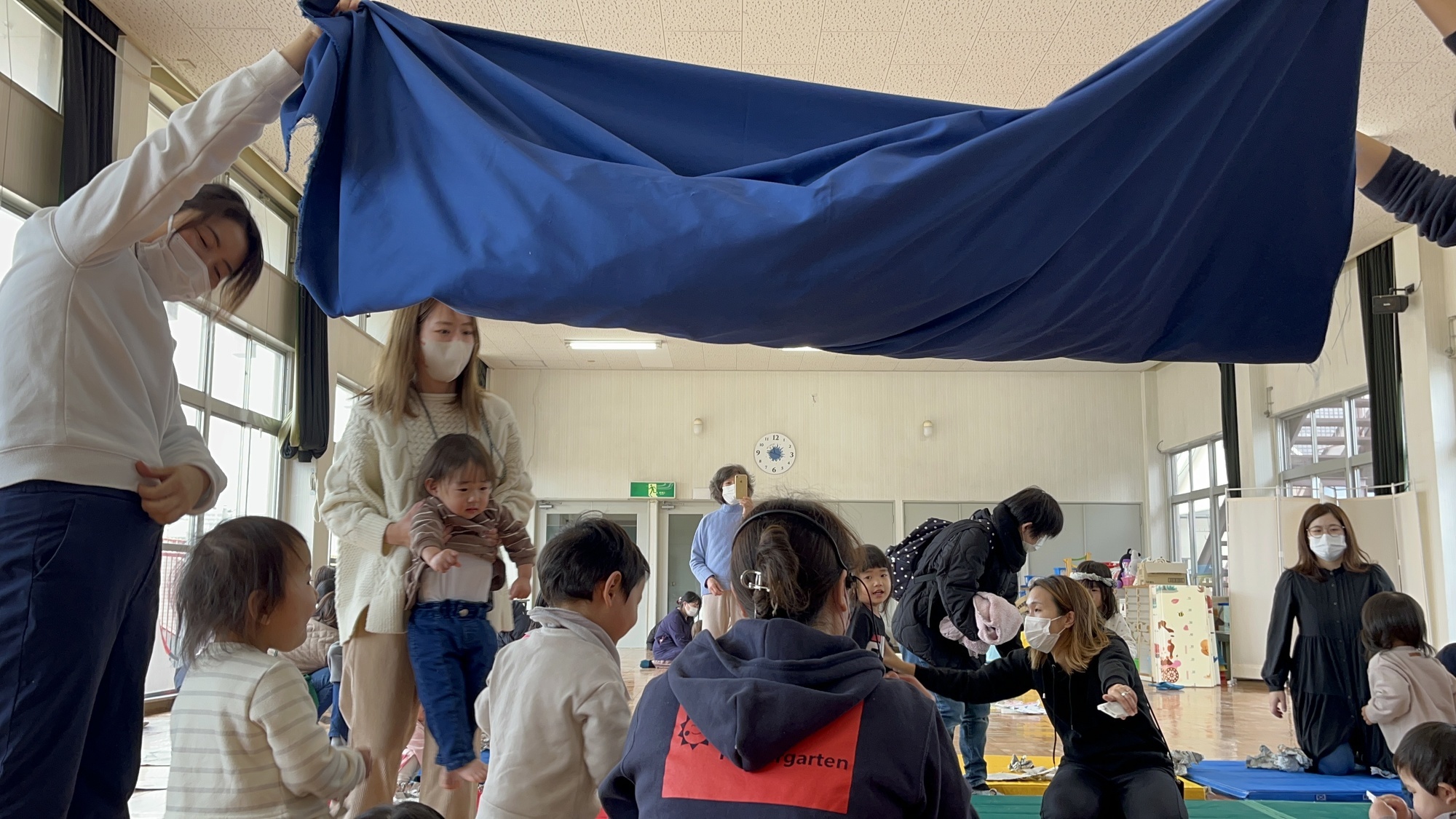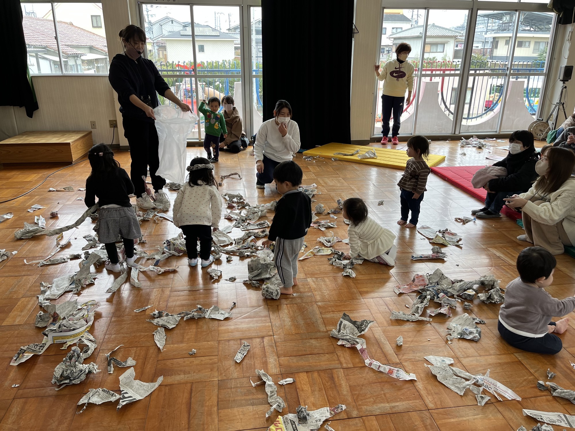 今日の園庭開放では、新聞遊びをしました!