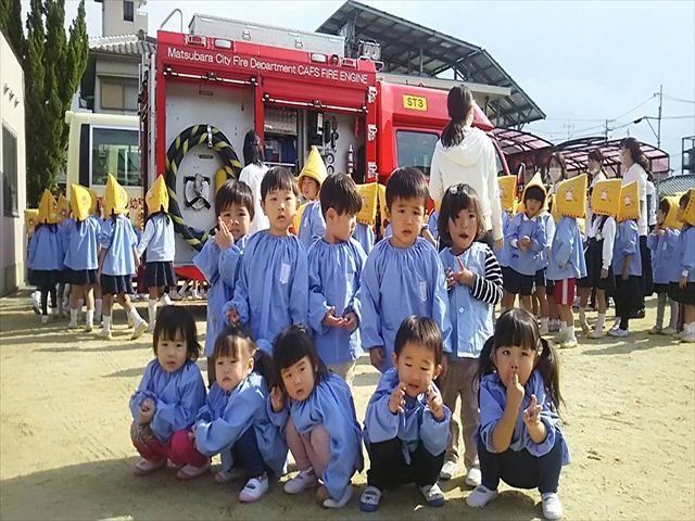 消防車に興味津津(*^。^*)