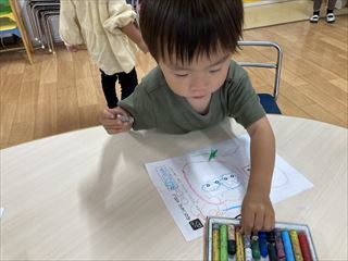 コロナの影響もあり幼稚園での夏祭りには参加できなかったけれど、ぴよちゃん教室の中で楽しむことができました☆