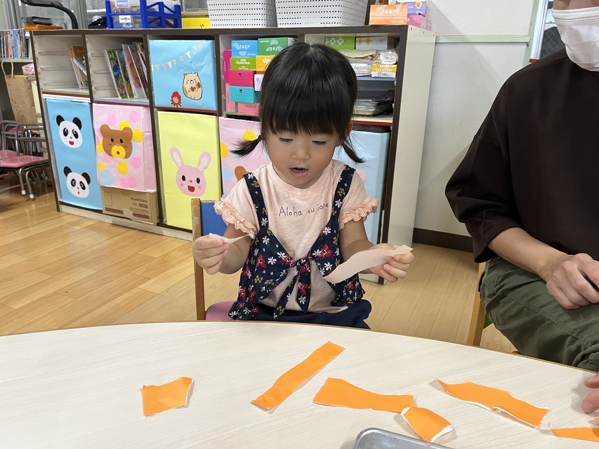 音の違いを感じ、言葉にして言いながら、ちぎっていくお友だちも。