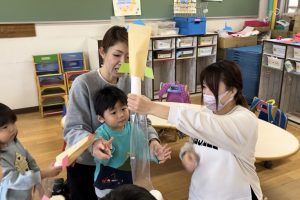 自分で作った物で遊ぼうと、ロケットを作りました!!