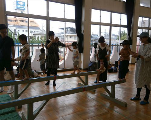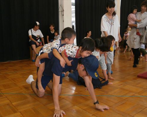 親と一緒にビヨーンと持ち上げてもらったり、背中に乗ったり☆