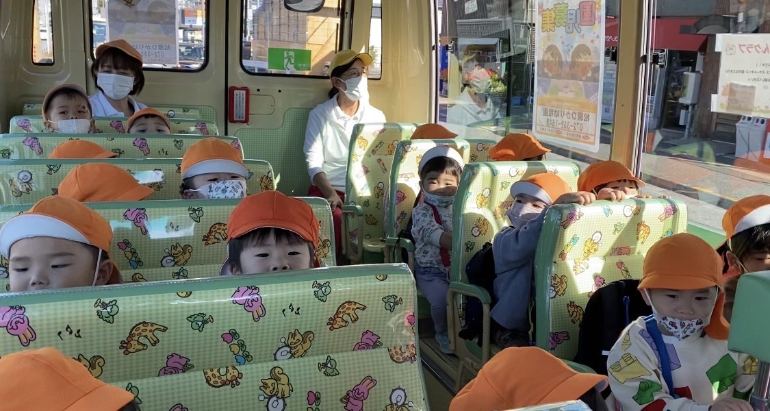 バスの中ではおうたを歌ったり、すれ違う大きなトラックやゴミ収集車に手を振って嬉しそうな子どもたち。