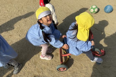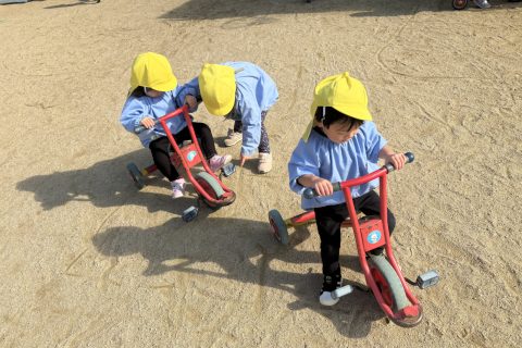 最近のお外遊びでは、三輪車やスライダーやボールなど