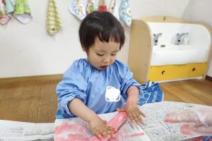 両手に絵の具がたくさんつきましたが、みんなへっちゃら♬