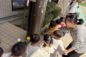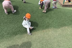 お友達同士つながりながら、チューリップのお花を見たり、外遊びにも行っていますよ。
