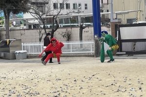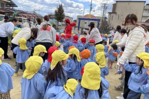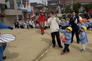 ひかり幼稚園にも地域の大阪老人ホームのご協力と、松原警察のご協力のもと2回も鬼さんがやってきました。