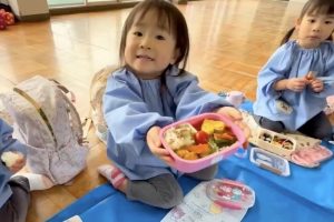 登園してからすぐに「お弁当はいつ?」と食べるのを楽しみにしていた子どもたちで、嬉しそうな笑顔で見せてくれました。