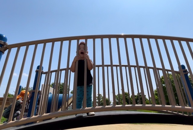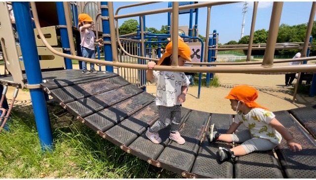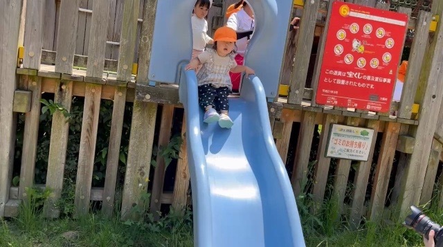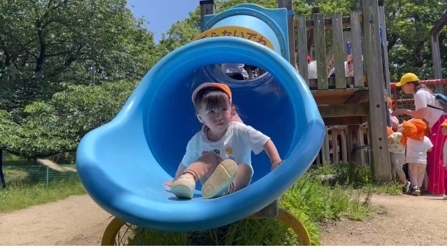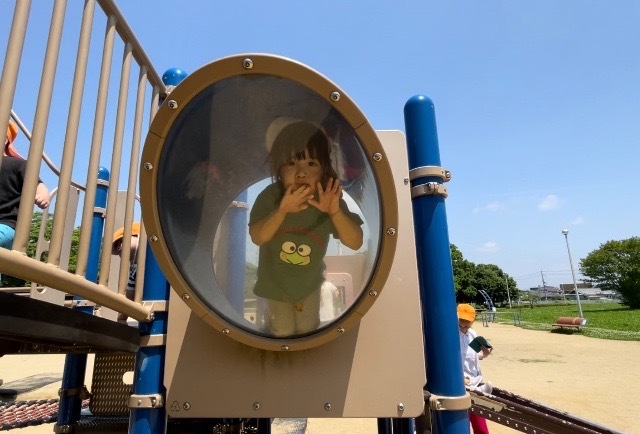いろんな形の滑り台も滑りました。段差もしっかり足を使って登っていました。