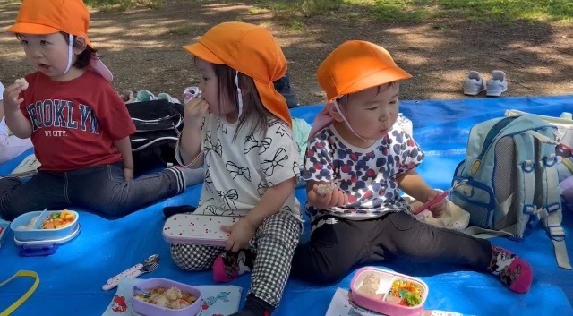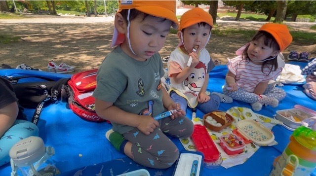 外の風に当たりながら食べるお弁当はおいしかったね⭐︎