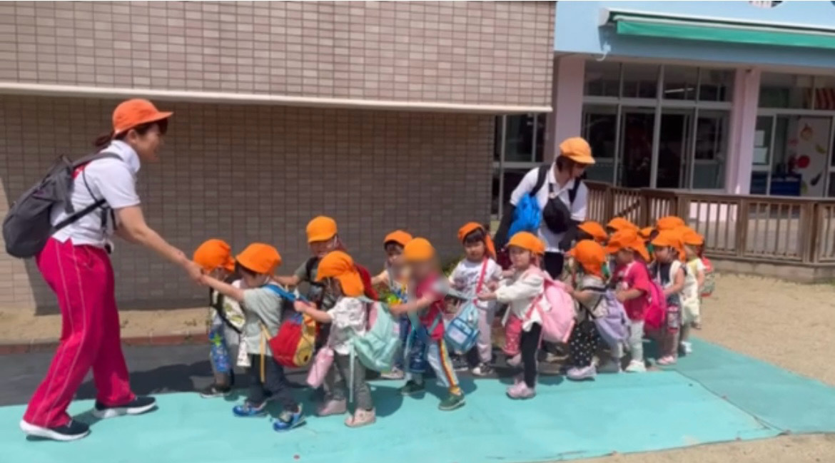 バスに乗ることが初めてで、楽しみにしていた子どもたち。見送りに来てくれたつぼみ1組さんにも嬉しそうに手を振っていました。